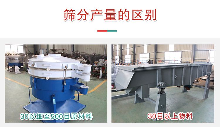 針對30目以粗上物料而言,振動(dòng)篩和搖擺篩產(chǎn)量基本相同,對30以細(xì)至500目原材料來說,搖擺篩的生產(chǎn)量則大大高過振動(dòng)篩,一般為振動(dòng)篩的5—10倍。