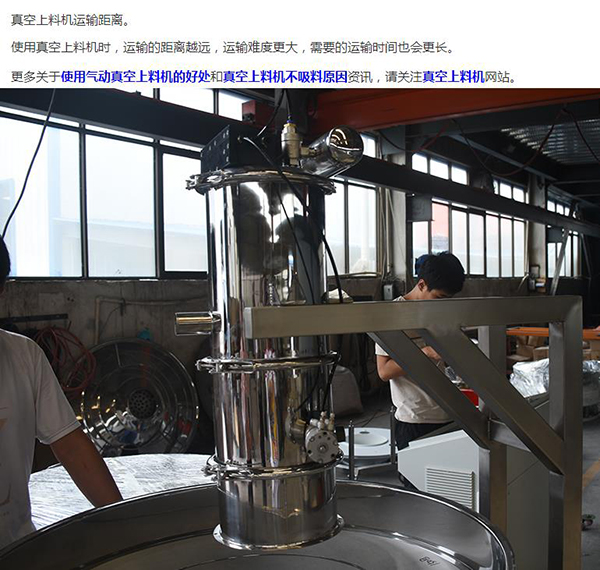 真空上料機在輸送不同物料的時候,運輸速度和運輸效果是不同的。如果物料的質(zhì)量越大,運輸時間就越長,運輸效果就越糟糕;如果物料比較潮濕,可能不太適合用真空上料機進行輸送,因為這樣會導(dǎo)致運輸速度減慢,甚至?xí)袣堄辔锪险丛谠O(shè)備上。