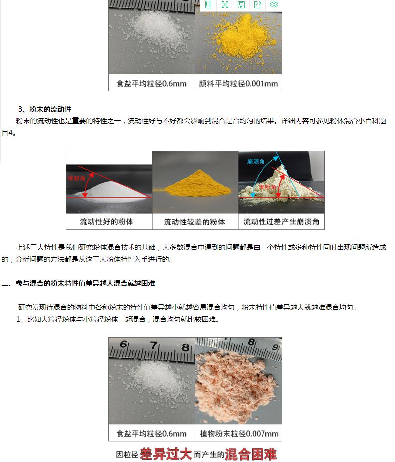 有些粉體因為潮濕、粘性過大、含有不易分散的假顆粒、含有纖維束狀物質(zhì)等等均會造成混合困難。