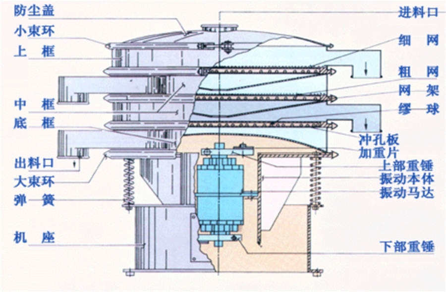 旋振篩是一種高精度細粉篩分機械,其噪音低、效率高,快速換網(wǎng)只需3-5分鐘,全封閉結(jié)構(gòu),適用于粒、粉、粘液等物料的篩分過濾。旋振篩是由直立式振動電機作激振源,電機上、下兩端安裝有偏心重錘,將電機的旋轉(zhuǎn)運動轉(zhuǎn)變?yōu)樗?、垂直、傾斜的三次元運動,再把這個運動傳遞給篩面。調(diào)節(jié)電機上、下兩端的相位角,可以改變物料在篩面上的運動軌跡。