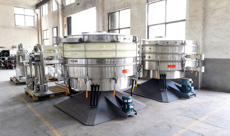 即可調(diào)節(jié)偏心距的激振器產(chǎn)生了非線性三維運(yùn)動(dòng),物料也產(chǎn)生同樣的近似手動(dòng)作業(yè)的運(yùn)動(dòng),從而達(dá)到篩分之目的,