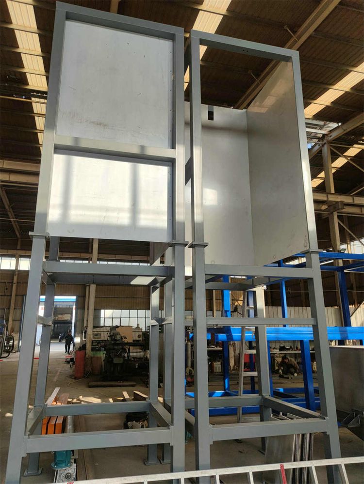 結(jié)構(gòu):噸袋卸料投料站用于噸袋裝粉狀、顆粒狀物料拆包卸料作業(yè)。該設(shè)備由機(jī)架、提升裝置、隔膜閥、暫存料倉等組成;根據(jù)工藝特點(diǎn)和設(shè)備尺寸,可以采用吊機(jī)和叉車兩種不同的方式; 可配有雙軌道,用于兩只電動葫蘆安裝的場合中,提高拆袋效率;材質(zhì)分為碳鋼和不銹鋼兩種;整套設(shè)備密封性好,操作簡便,極大的提高了生產(chǎn)環(huán)境和生產(chǎn)效率。