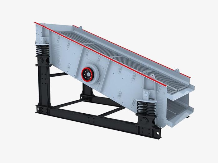 電動(dòng)機(jī)經(jīng)三角帶使激振器偏心塊產(chǎn)生高速旋轉(zhuǎn)。運(yùn)轉(zhuǎn)的偏心塊產(chǎn)生很大的離心力,激發(fā)篩箱產(chǎn)生一定振幅的圓運(yùn)動(dòng),篩上物料在傾斜的篩面上受到篩箱傳給的沖量而產(chǎn)生連續(xù)的拋擲運(yùn)動(dòng),物料與篩面相遇的過程中使小于篩孔的顆粒透篩,從而實(shí)現(xiàn)分級。