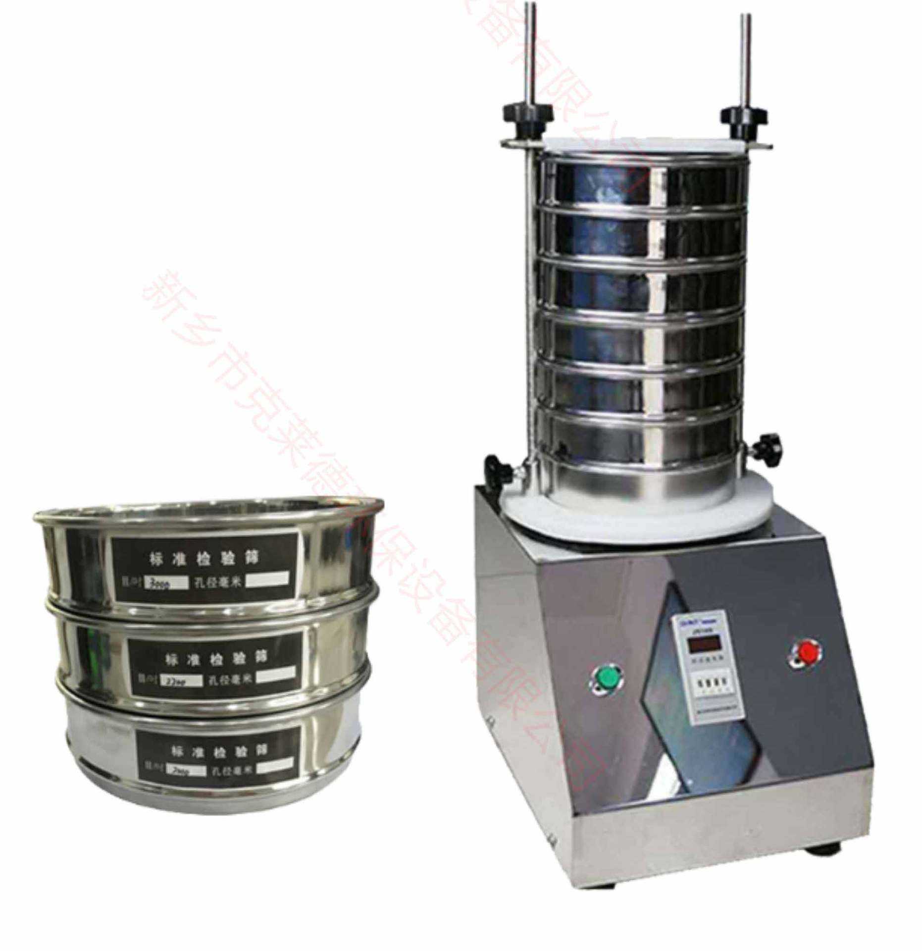 “機(jī)械篩分”將篩子按孔徑大小疊在一起,給料放在頂上一層篩子上,并加上蓋和底盤,一般疊5~6個(gè)篩子。然后放在機(jī)械振篩器上進(jìn)行機(jī)械振動(dòng)篩分。通常,振動(dòng)時(shí)間為20分鐘。檢測篩分質(zhì)量時(shí),再用振篩器振篩器振篩5分鐘,如每分鐘篩下量小于0.2%試驗(yàn)樣量即為合格,對于粗粒物料,過篩率小于1%即可。如篩分過程中損失量超過總篩分量的0.5%時(shí),試驗(yàn)必須重新取樣進(jìn)行。為避免損失和延長篩分時(shí)間,有時(shí)在開始篩分時(shí)先用細(xì)的篩子將粉塵篩除