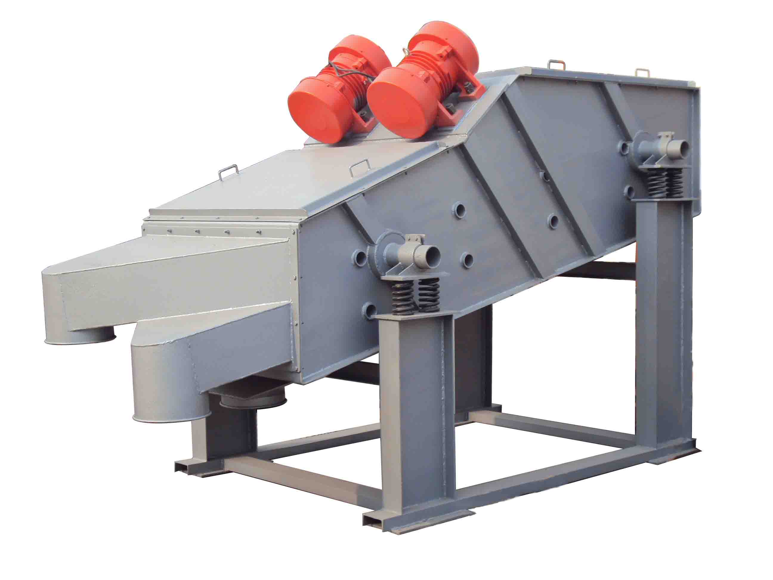 脫水振動篩主要由篩箱、激振器、支承系統(tǒng)及振動電機組成。