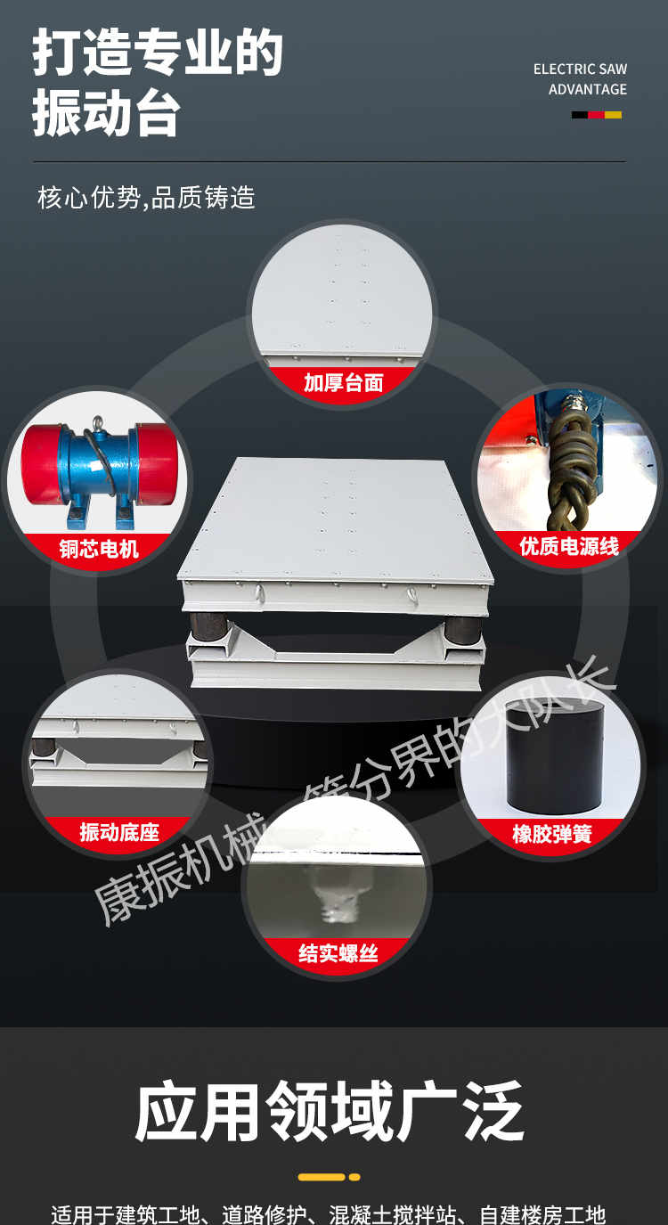 被廣泛應(yīng)用于試驗室、現(xiàn)場工地作試件成型和預(yù)制構(gòu)件震實各種板柱、梁等混凝土構(gòu)件振實成型,