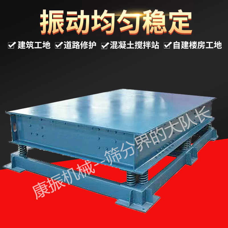 主要由臺底架、振動電機(jī)和彈簧等部件組成,臺面與底架均用鋼板和型鋼焊接而成,振動臺是用振動電機(jī)加一對相同的偏心輪組成。