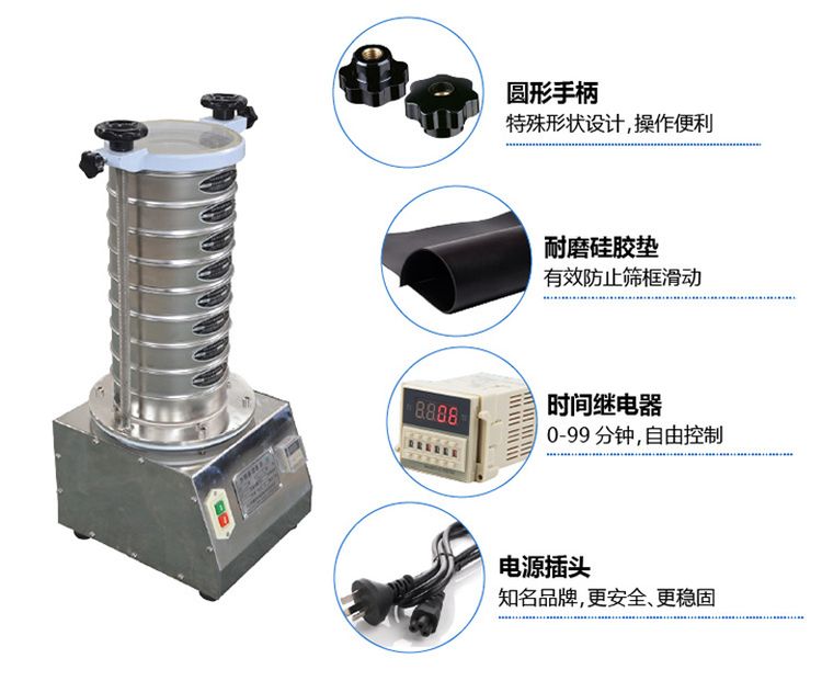 使每層試驗篩內(nèi)只留相同粒度的物料,達到不同粒度的分離并確定此物料的粒度組成,使篩框中的物料能非常有效的起到過濾、分級、篩分目的。